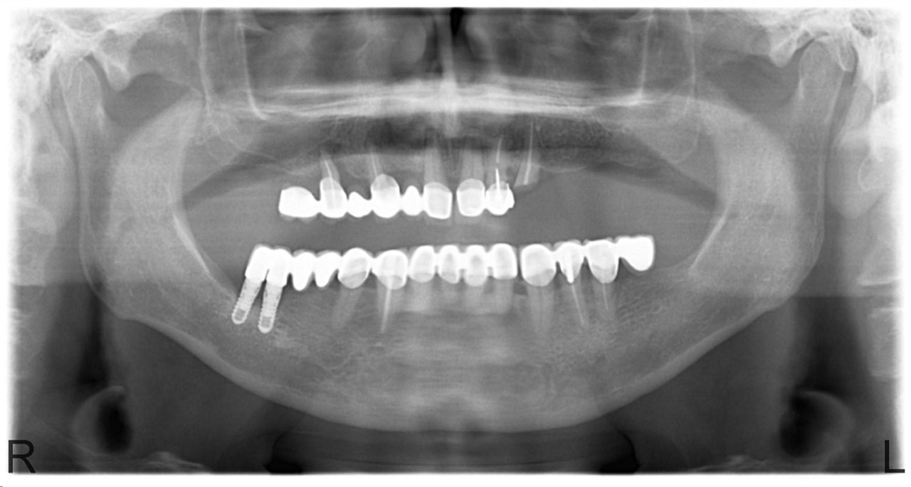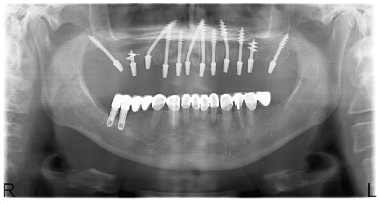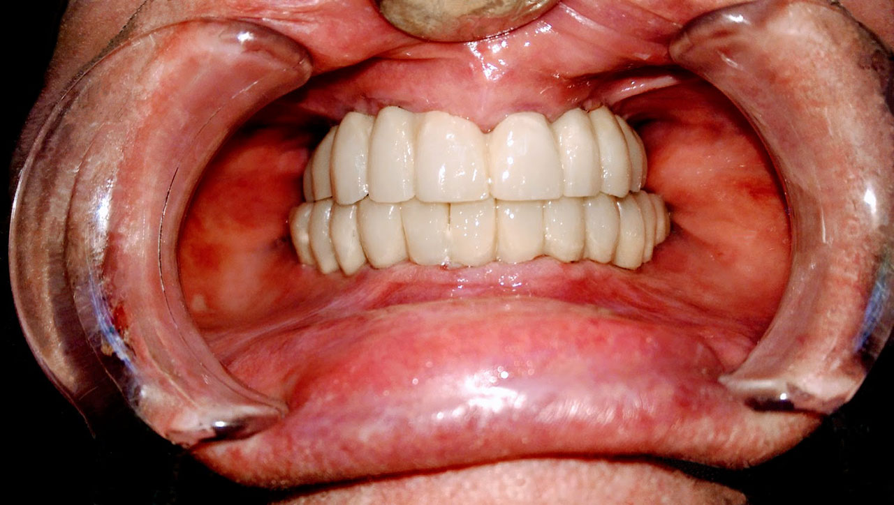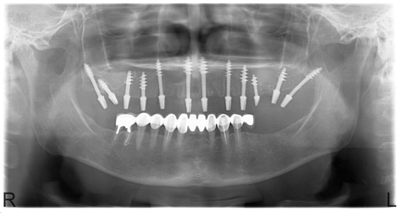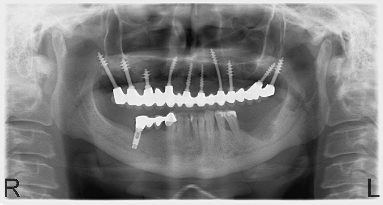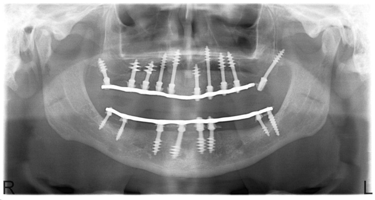 Alsó- felső fogatlan állcsont teljes implantációs helyreállítása.