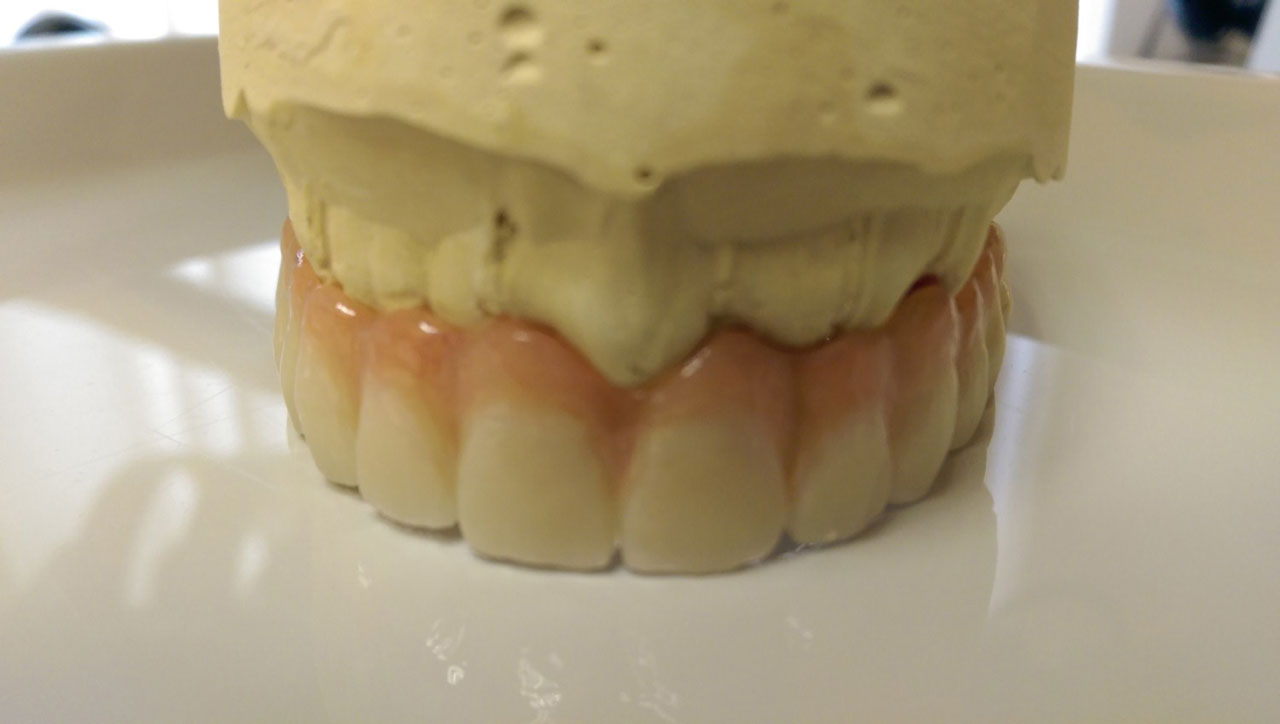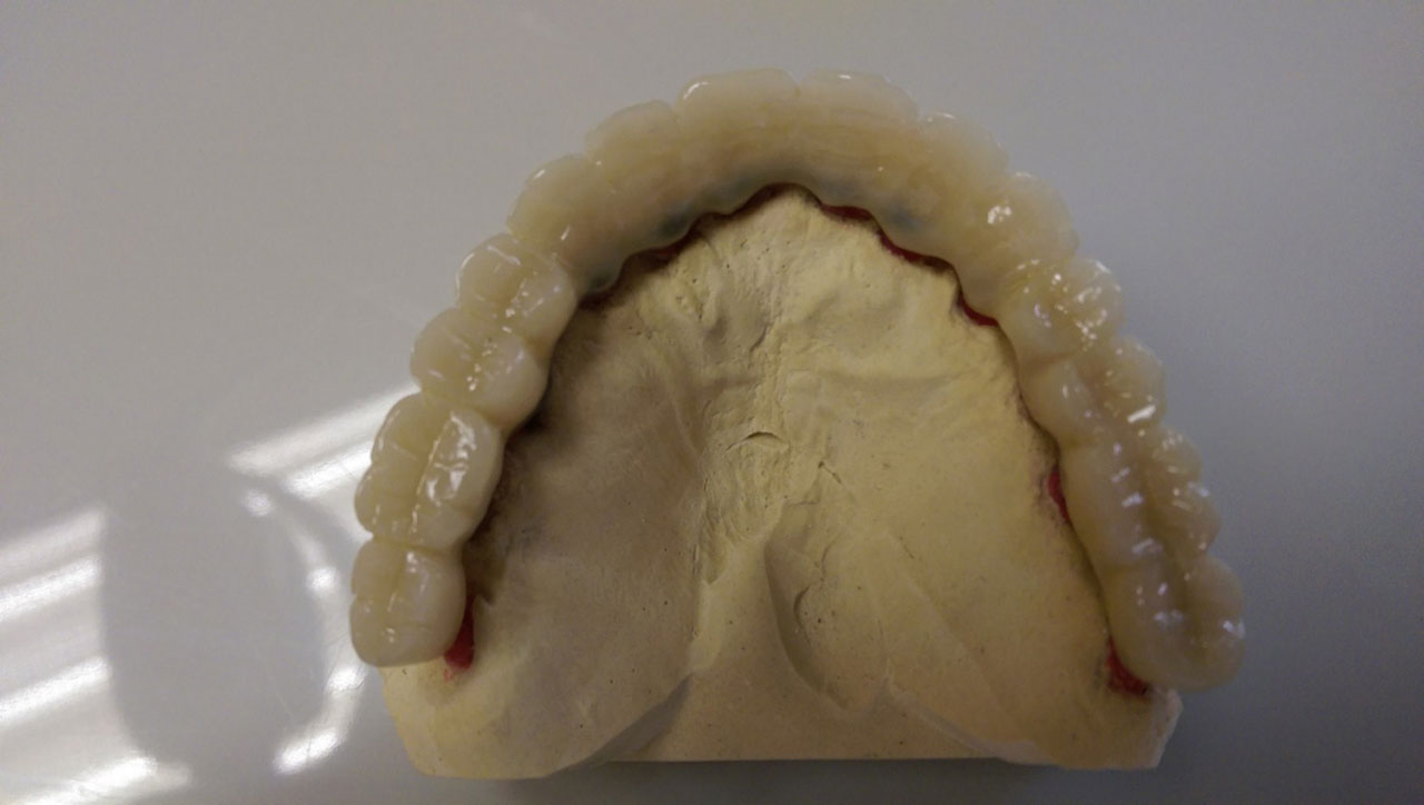 Így néz ki szájban a hosszútávú ideiglenes híd.(Fém vázzal erősített műanyag híd.)