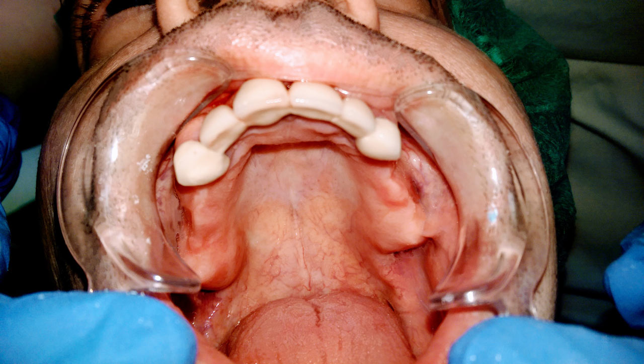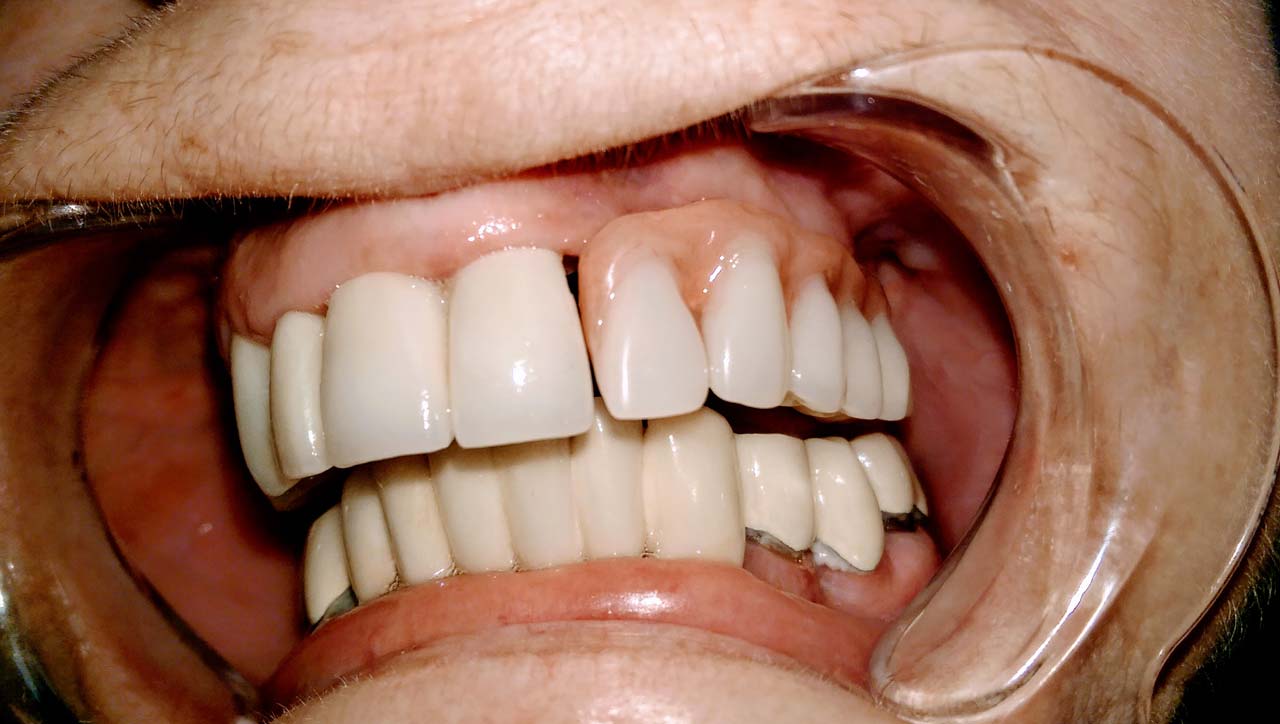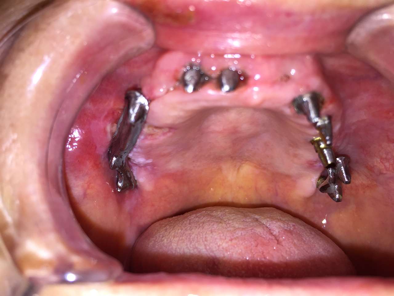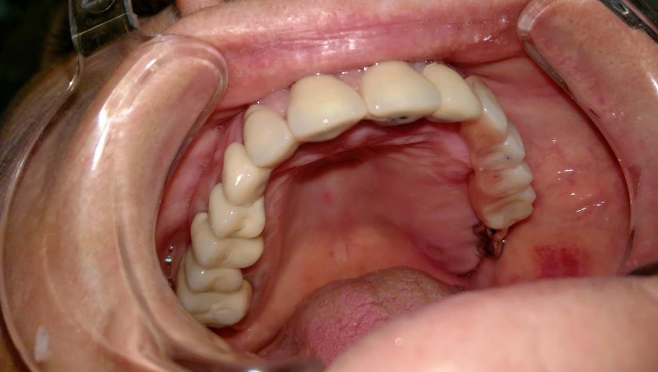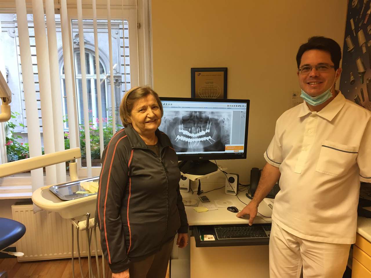 A régóta fennálló foghiány és a mozgó fogak miatt a páciens nem tudott jól rágni és harapni, illetve mosolyogni sem mert már jó ideje. A leggyorsabb és a legesztétikusabb megoldás az ilyen esetekre az IHDE azonnal terhelhető implantátumok behelyezése, és az azokra rögtön elkészített porcelán koronák elkészítése.