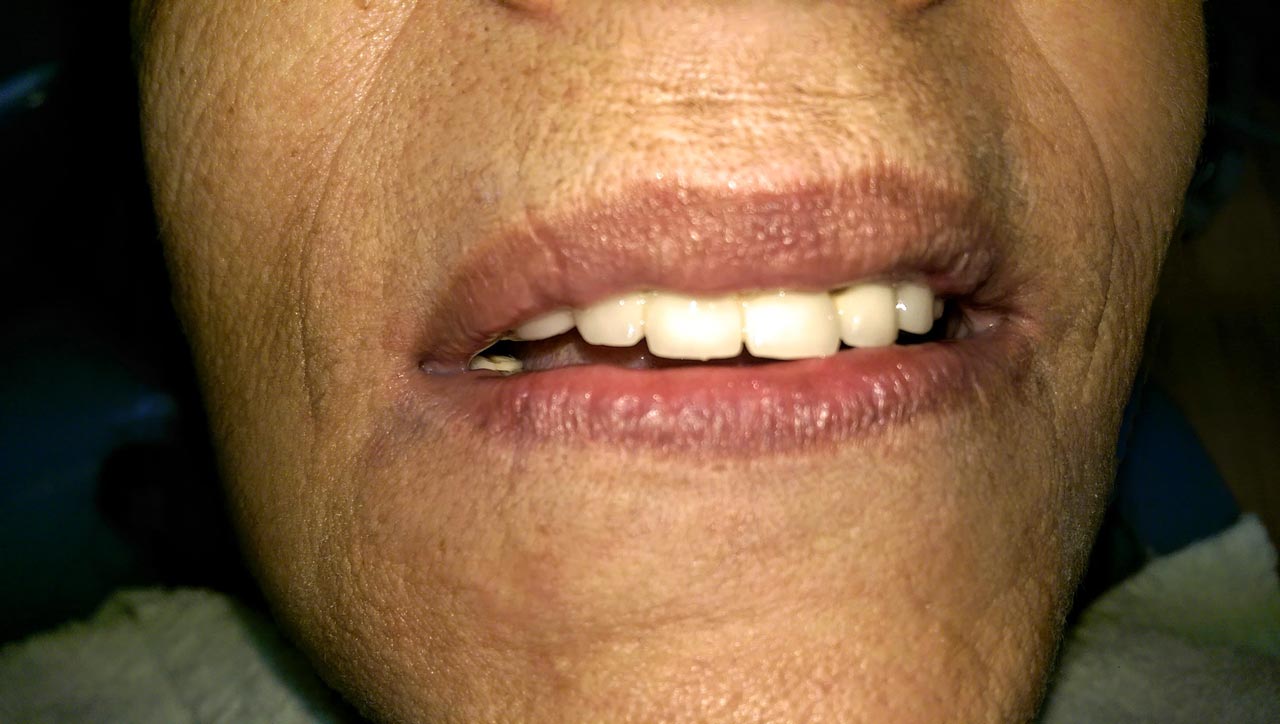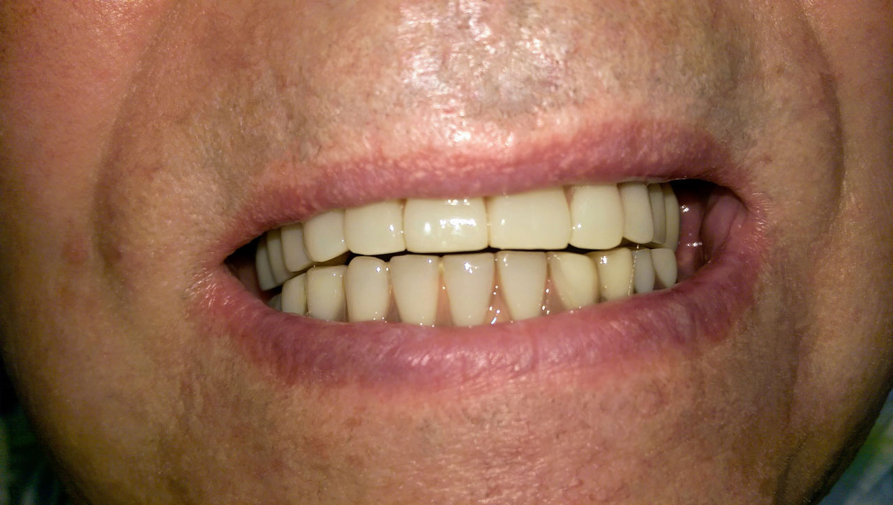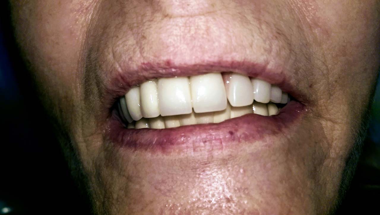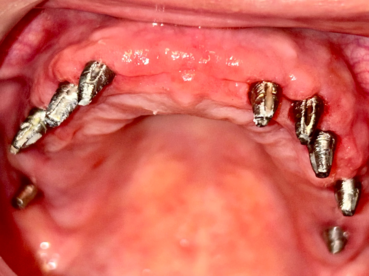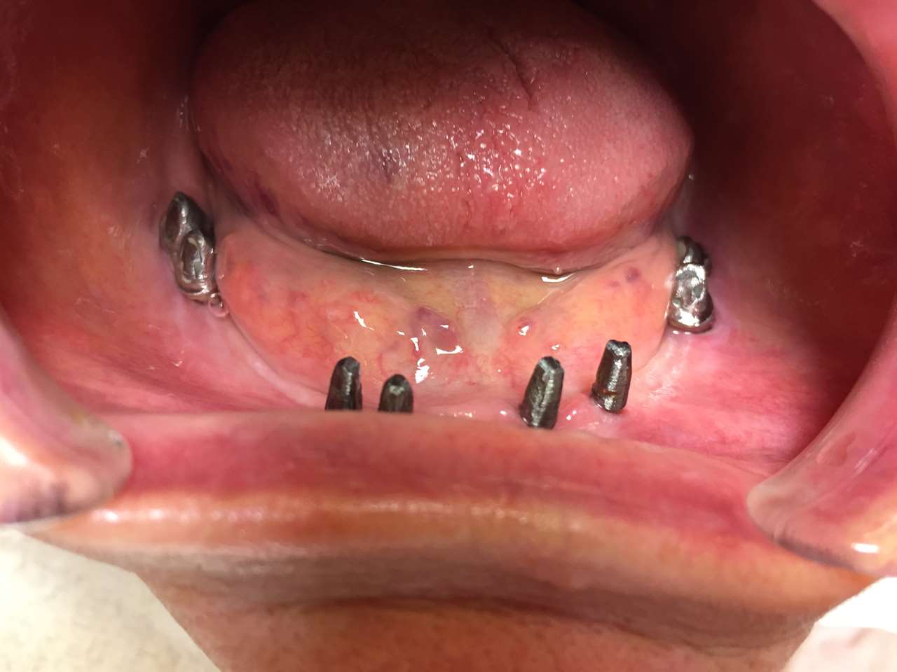 A régóta fennálló foghiány és a mozgó fogak miatt a páciens nem tudott jól rágni és harapni, illetve mosolyogni sem mert már jó ideje. A leggyorsabb és a legesztétikusabb megoldás az ilyen esetekre az IHDE azonnal terhelhető implantátumok behelyezése, és az azokra rögtön elkészített porcelán koronák elkészítése.