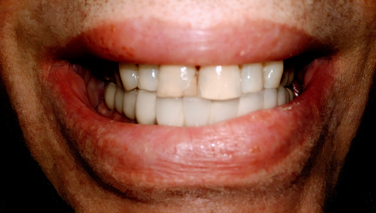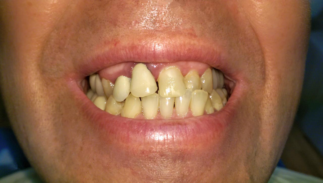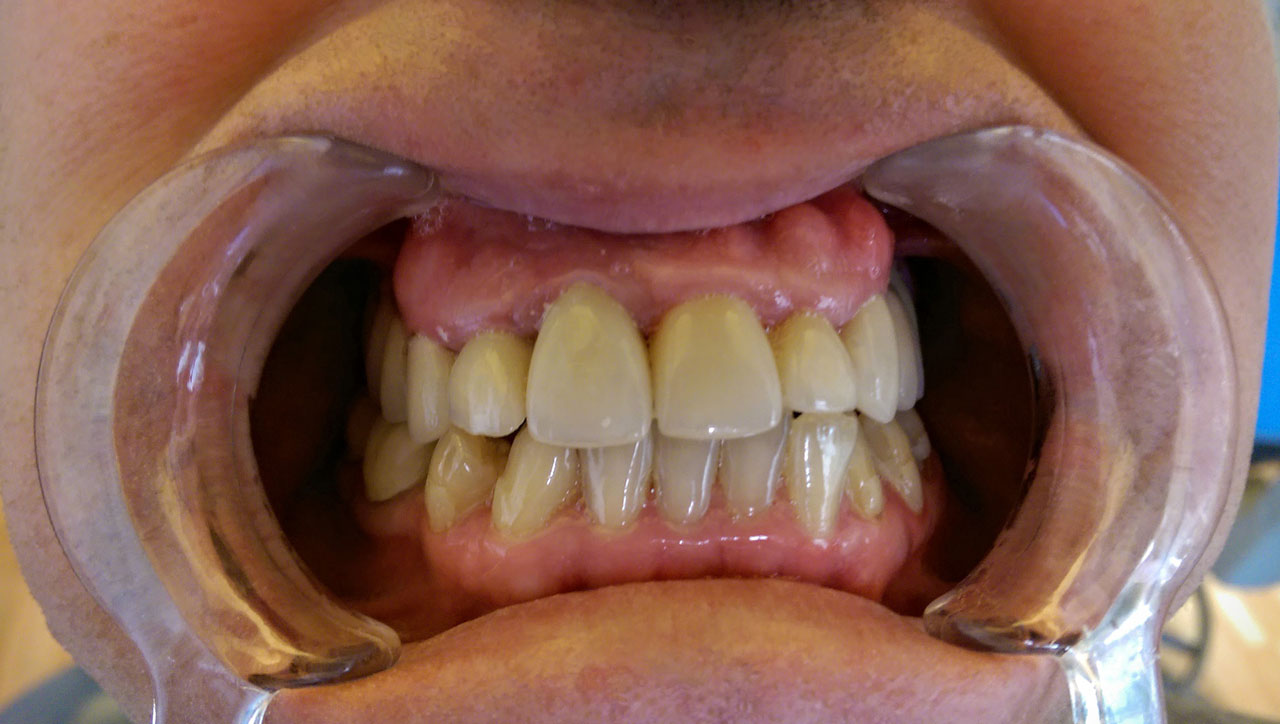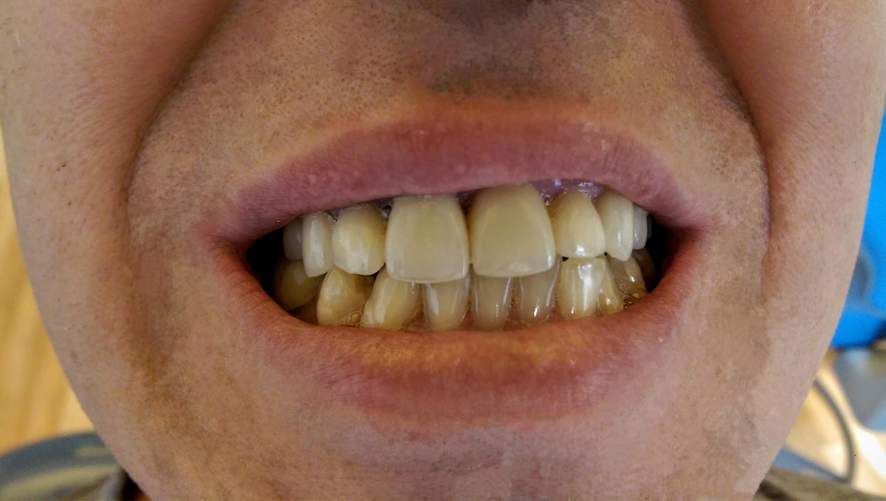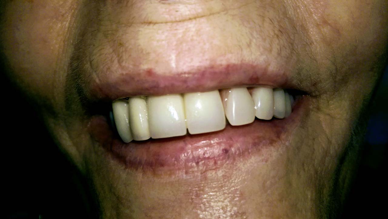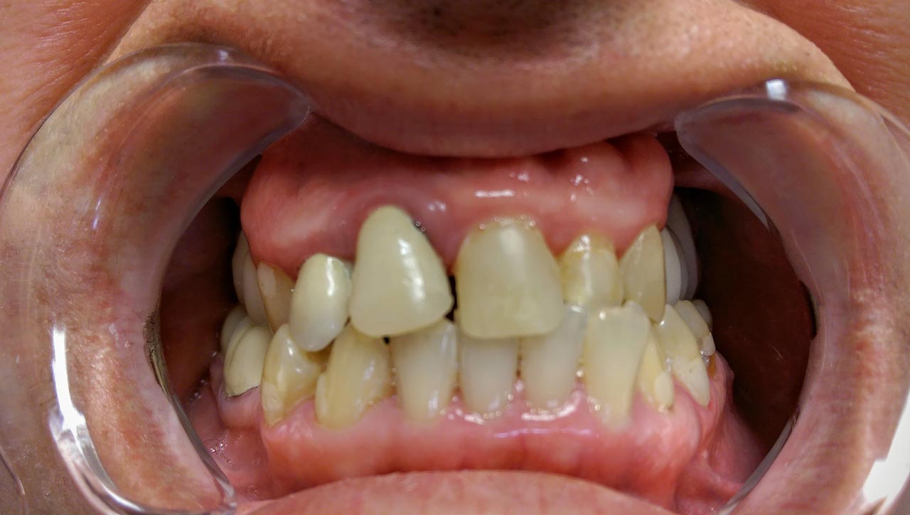 A régóta fennálló foghiány és a mozgó fogak miatt a páciens nem tudott jól rágni és harapni, illetve mosolyogni sem mert már jó ideje. A leggyorsabb és a legesztétikusabb megoldás az ilyen esetekre az IHDE azonnal terhelhető implantátumok behelyezése, és az azokra rögtön elkészített porcelán koronák elkészítése.