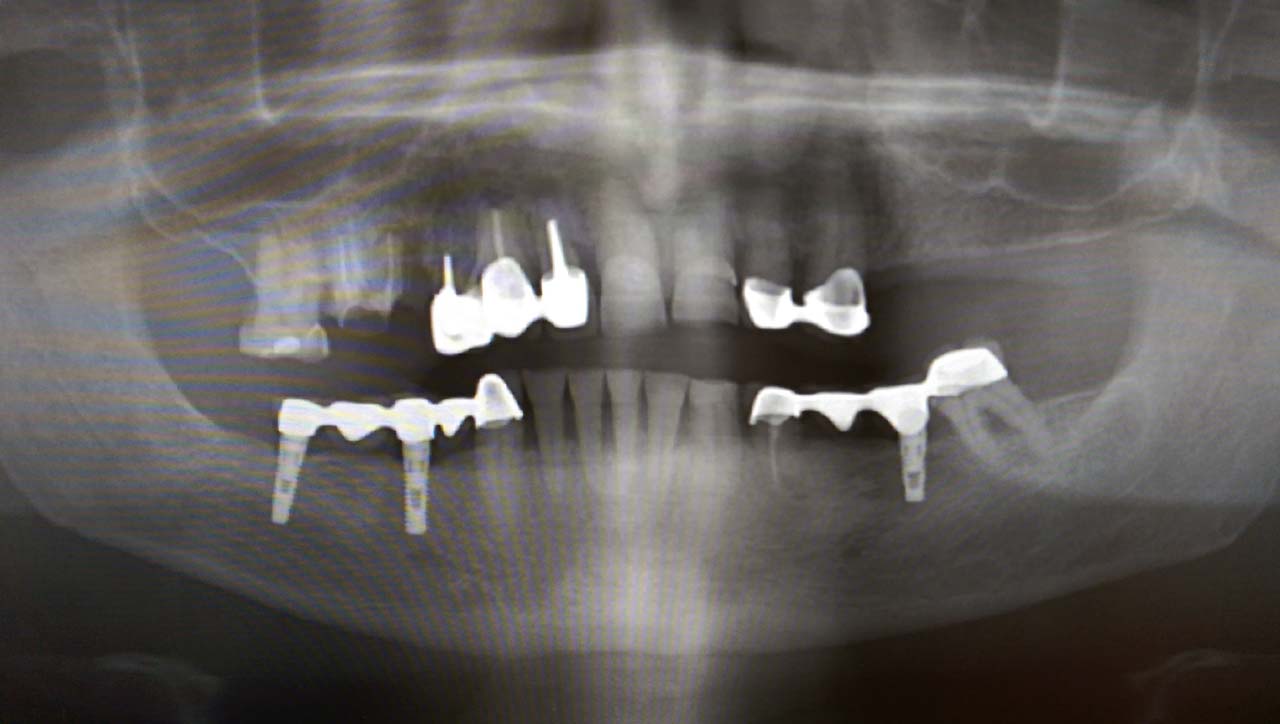 Azóta, a porcelán híddal változatlanul, minden probléma nélkül látják el a feladatukat az implantátumok. Kívánjuk, hogy a következő 24 év is problémamentesen teljen el!