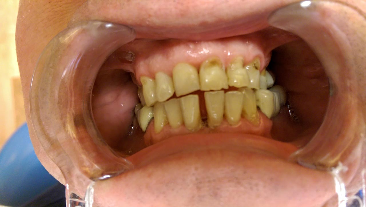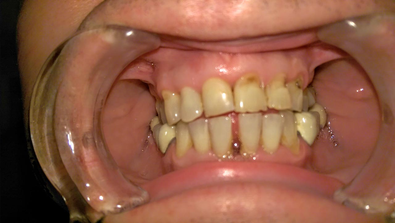 Foghiányos, fertőző gyökerekkel teli szájüreg helyreállítása