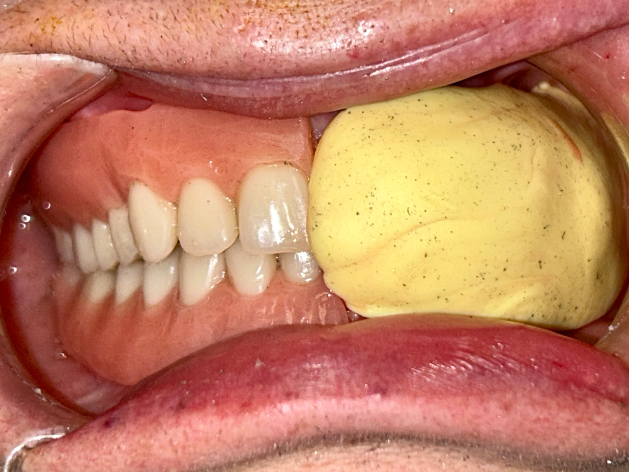 A mozgó, törött fogakon álló hidat a fogakkal együtt eltávolítottuk.