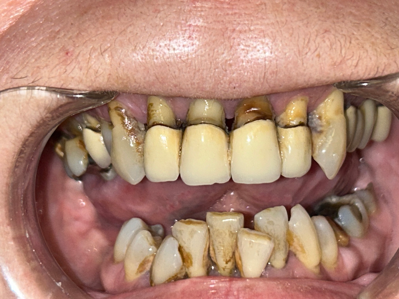 Foghiányos, fertőző gyökerekkel teli szájüreg helyreállítása esztétikailag és funkcionálisan 9 nap alatt.