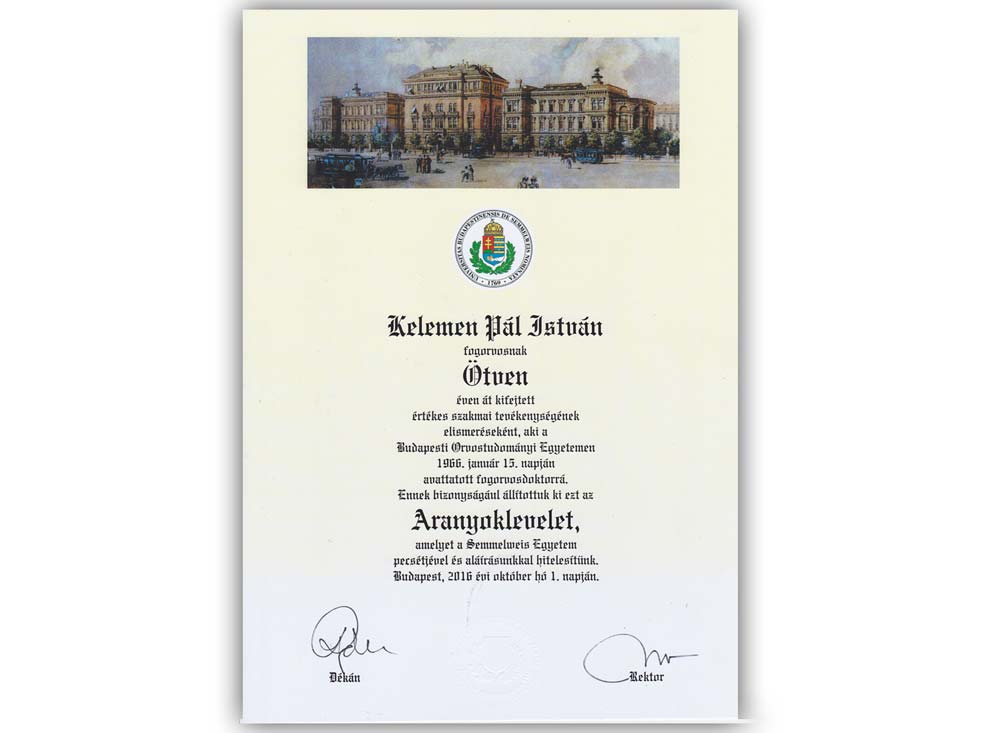 Dr. Kelemen Pál átveszi az Aranydiplomát: